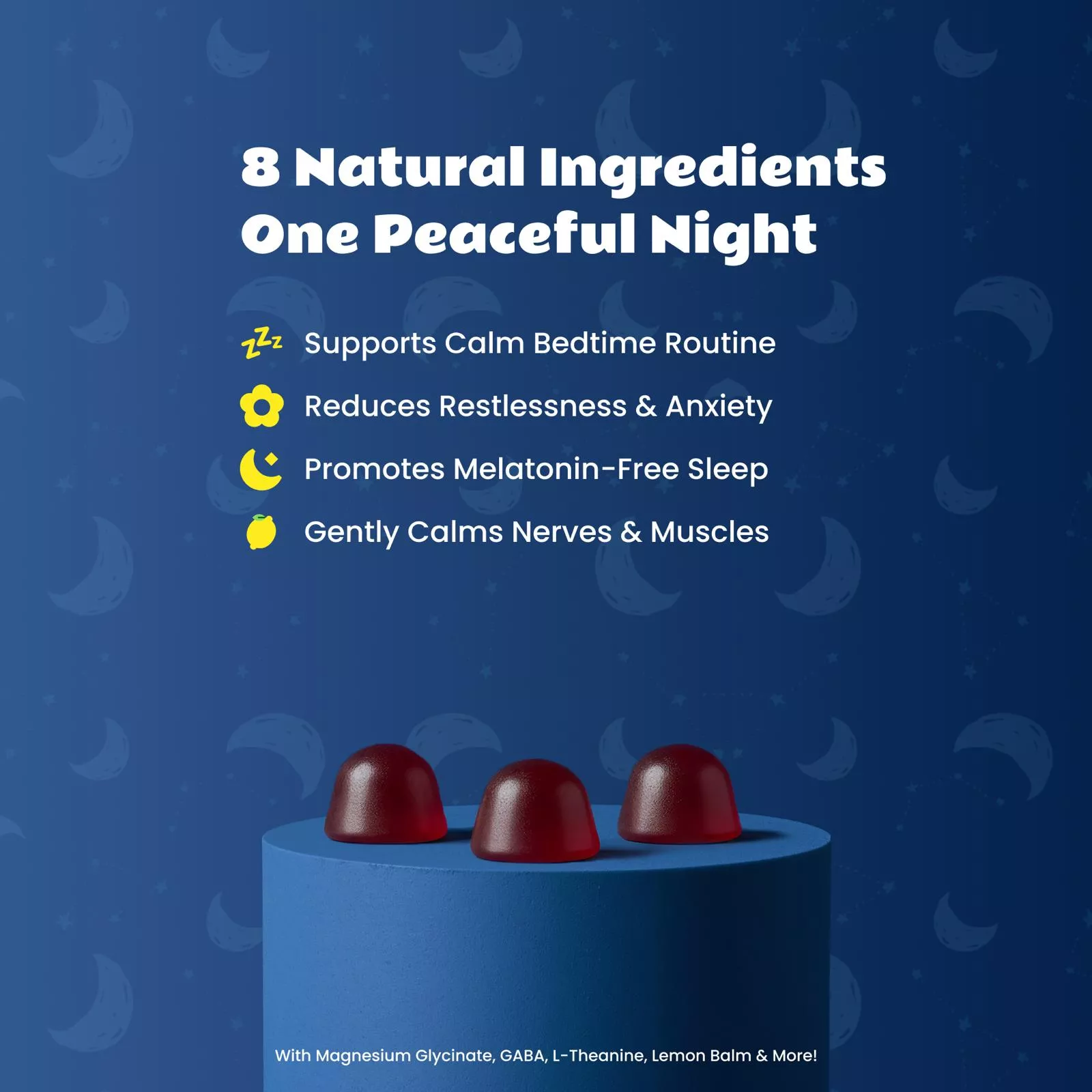 Designed for screen-fatigued kids, crafted by sleep-deprived parents. Our doctor-formulated gummies help children transition from screen time to sleep time naturally—supporting your child's own sleep rhythm with calming nutrients like Magnesium Glycinate, L-Theanine, and GABA.